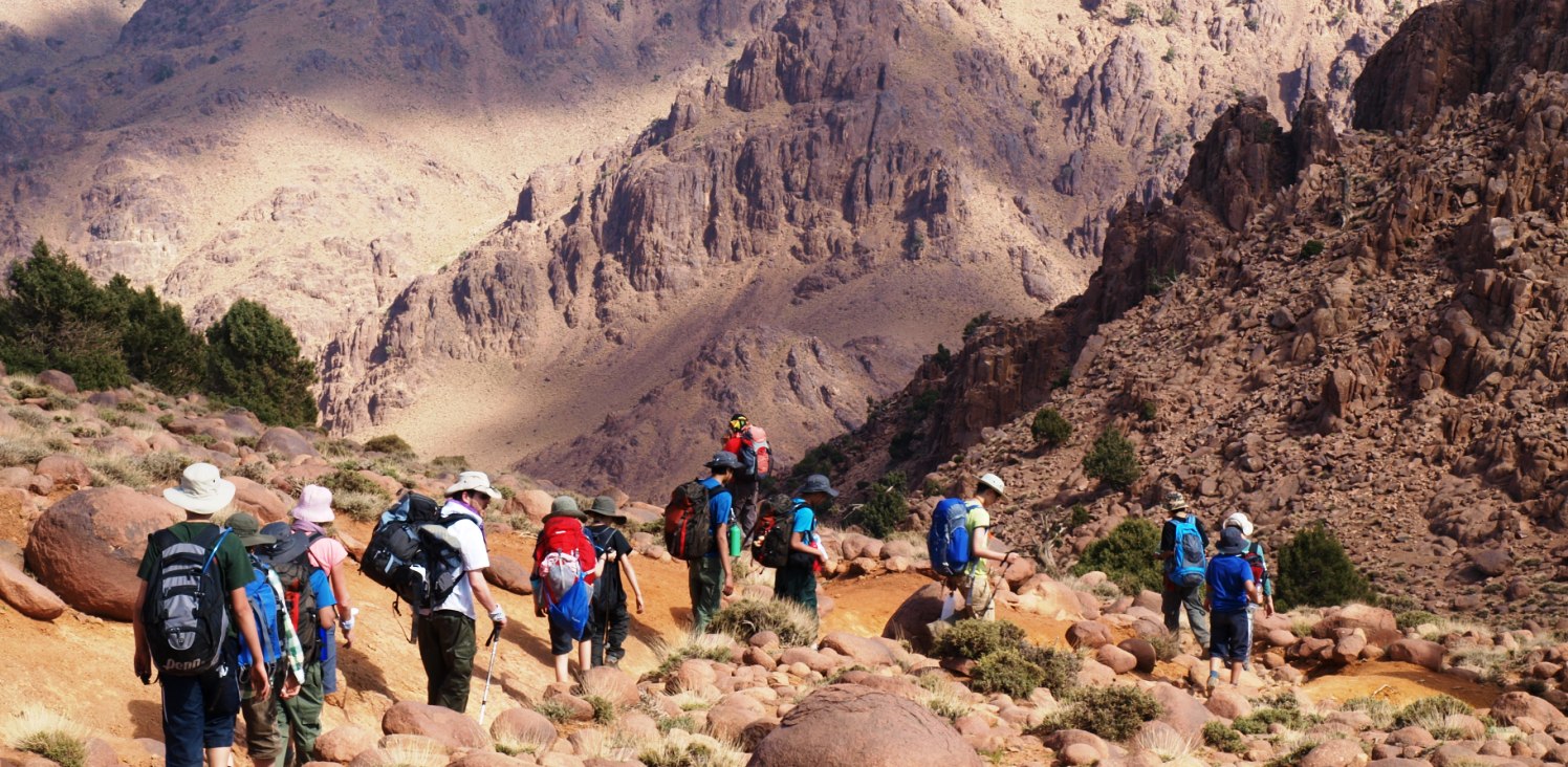 After lunch We shall now set off towards the north along steeply descending, zigzagging trails of the higher slopes of the Valley of the Assif n’Isouhouanem n’Ouagounss towards the Shrine of Sidi Chamharouch. Set beside a waterfall, There is a pilgrimage ‘marabout’ shrine here, probably the remnant of a pre-Islamic culture, but forbidden to non-Muslims. another 2 hours downhill will allow to get to the village of Imlil from where most of the treks start prior to take the taxi back to Marrakech.